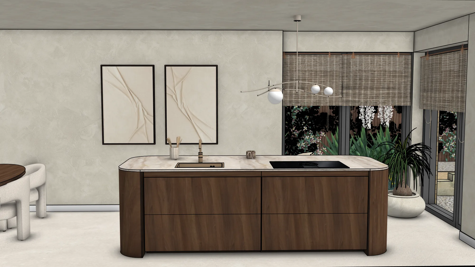 - 3D afbeeldingen van de definitieve indeling vanuit verschillende hoeken.